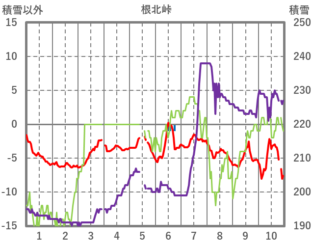 | 日 | 時 | 気温 | 降水 | 風向/風速 | 日照 | 積雪 | 降雪 |