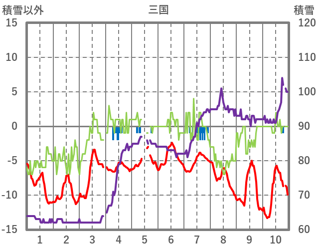 | 日 | 時 | 気温 | 降水 | 風向/風速 | 日照 | 積雪 | 降雪 |
