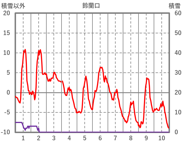 | 日 | 時 | 気温 | 降水 | 風向/風速 | 日照 | 積雪 | 降雪 |