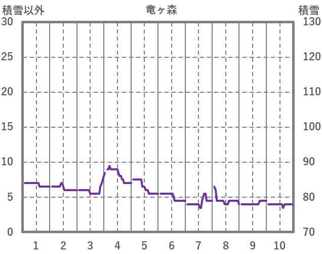 | 日 | 時 | 気温 | 降水 | 風向/風速 | 日照 | 積雪 | 降雪 |