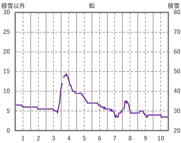 | 日 | 時 | 気温 | 降水 | 風向/風速 | 日照 | 積雪 | 降雪 |