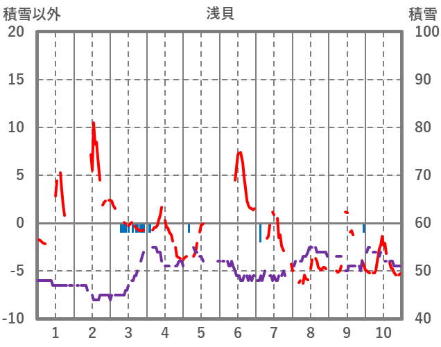 | 日 | 時 | 気温 | 降水 | 風向/風速 | 日照 | 積雪 | 降雪 |
