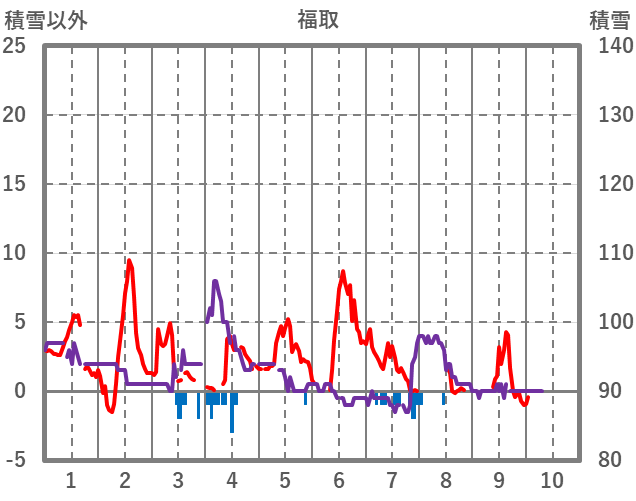 | 日 | 時 | 気温 | 降水 | 風向/風速 | 日照 | 積雪 | 降雪 |