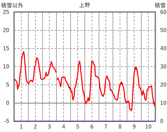 | 日 | 時 | 気温 | 降水 | 風向/風速 | 日照 | 積雪 | 降雪 |