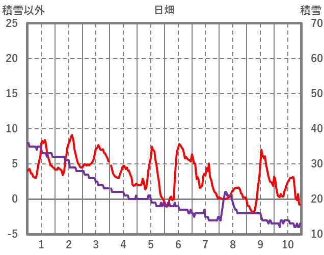| 日 | 時 | 気温 | 降水 | 風向/風速 | 日照 | 積雪 | 降雪 |