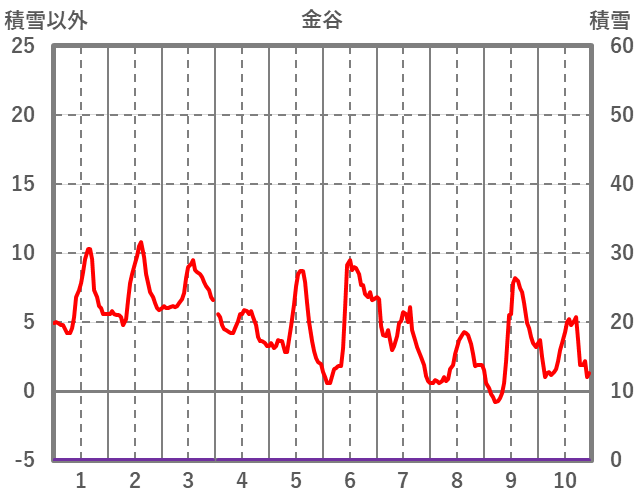 | 日 | 時 | 気温 | 降水 | 風向/風速 | 日照 | 積雪 | 降雪 |
