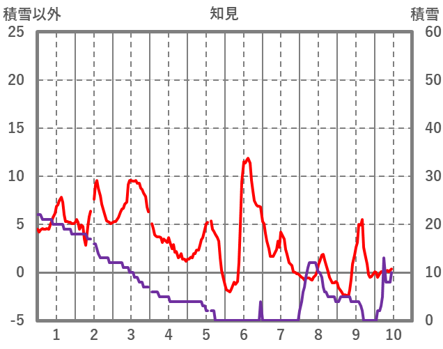 | 日 | 時 | 気温 | 降水 | 風向/風速 | 日照 | 積雪 | 降雪 |