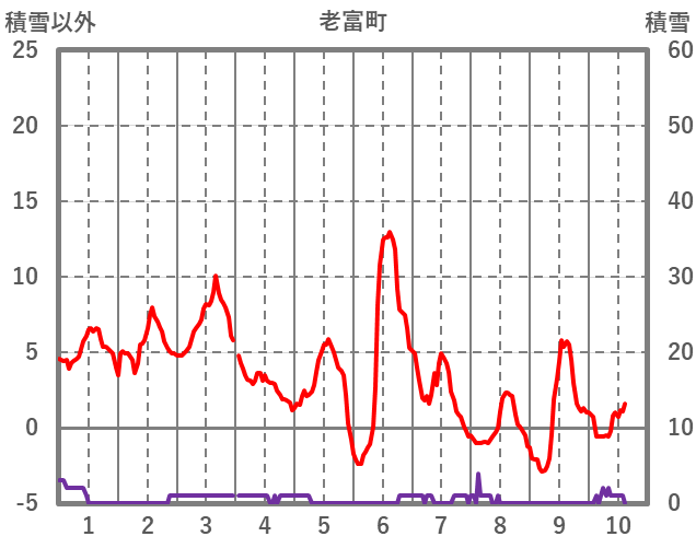 | 日 | 時 | 気温 | 降水 | 風向/風速 | 日照 | 積雪 | 降雪 |
