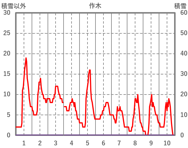 | 日 | 時 | 気温 | 降水 | 風向/風速 | 日照 | 積雪 | 降雪 |