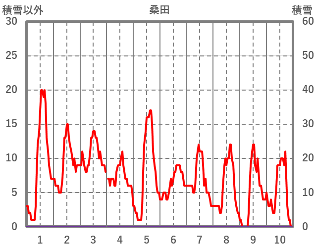 | 日 | 時 | 気温 | 降水 | 風向/風速 | 日照 | 積雪 | 降雪 |