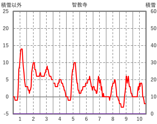 | 日 | 時 | 気温 | 降水 | 風向/風速 | 日照 | 積雪 | 降雪 |