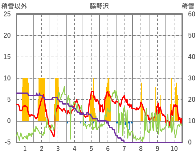 | 日 | 時 | 気温 | 降水 | 風向/風速 | 日照 | 積雪 | 降雪 |