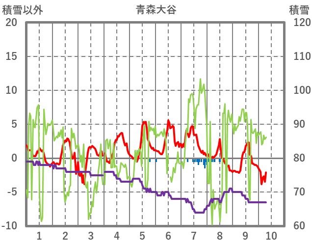 | 日 | 時 | 気温 | 降水 | 風向/風速 | 日照 | 積雪 | 降雪 |