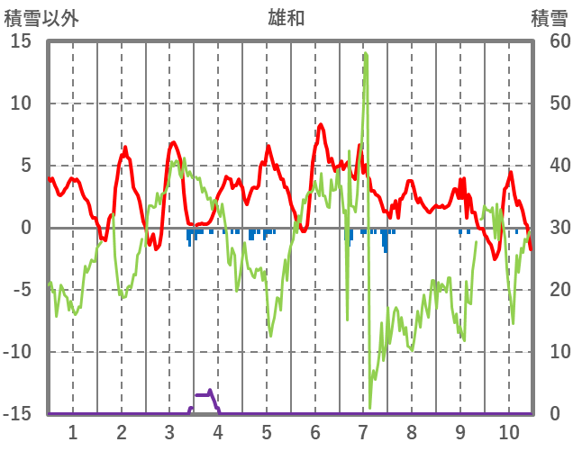 | 日 | 時 | 気温 | 降水 | 風向/風速 | 日照 | 積雪 | 降雪 |