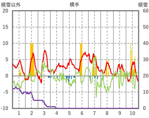 | 日 | 時 | 気温 | 降水 | 風向/風速 | 日照 | 積雪 | 降雪 |
