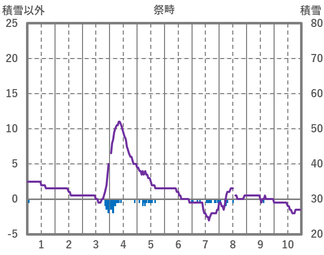 | 日 | 時 | 気温 | 降水 | 風向/風速 | 日照 | 積雪 | 降雪 |