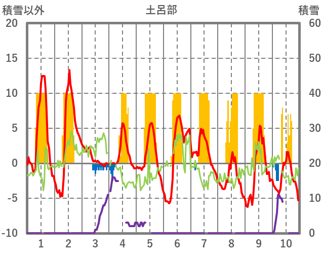| 日 | 時 | 気温 | 降水 | 風向/風速 | 日照 | 積雪 | 降雪 |