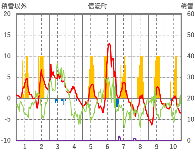 | 日 | 時 | 気温 | 降水 | 風向/風速 | 日照 | 積雪 | 降雪 |
