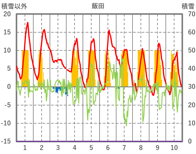 | 日 | 時 | 気温 | 降水 | 風向/風速 | 日照 | 積雪 | 降雪 |