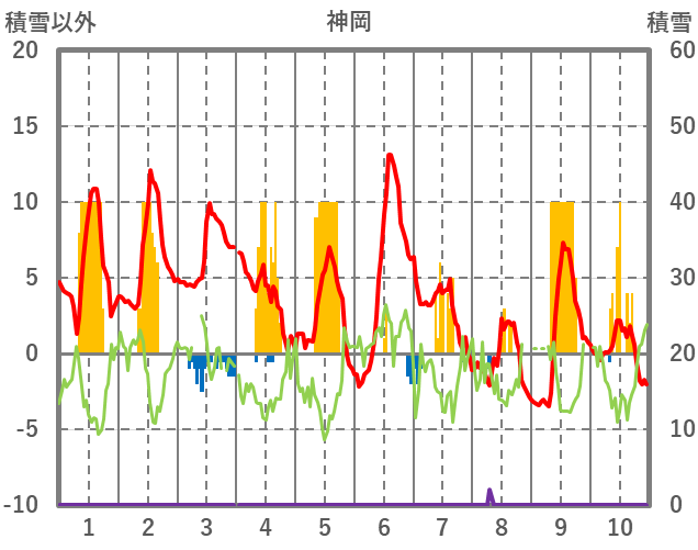 | 日 | 時 | 気温 | 降水 | 風向/風速 | 日照 | 積雪 | 降雪 |