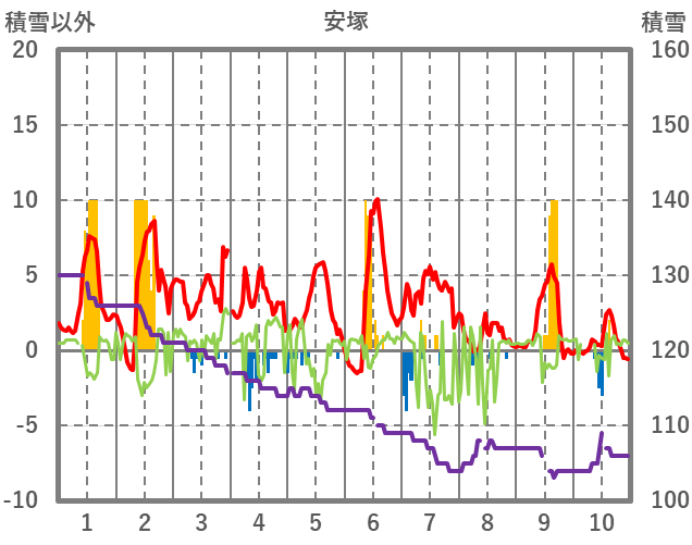 | 日 | 時 | 気温 | 降水 | 風向/風速 | 日照 | 積雪 | 降雪 |
