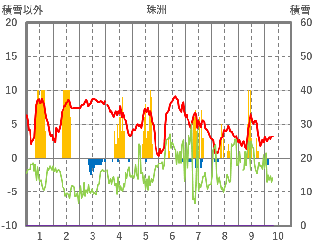 | 日 | 時 | 気温 | 降水 | 風向/風速 | 日照 | 積雪 | 降雪 |