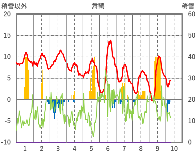| 日 | 時 | 気温 | 降水 | 風向/風速 | 日照 | 積雪 | 降雪 |