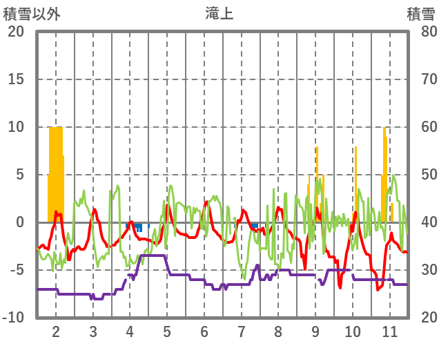 | 日 | 時 | 気温 | 降水 | 風向/風速 | 日照 | 積雪 | 降雪 |