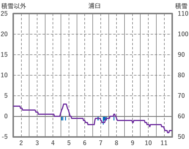 | 日 | 時 | 気温 | 降水 | 風向/風速 | 日照 | 積雪 | 降雪 |