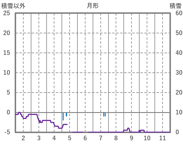 | 日 | 時 | 気温 | 降水 | 風向/風速 | 日照 | 積雪 | 降雪 |