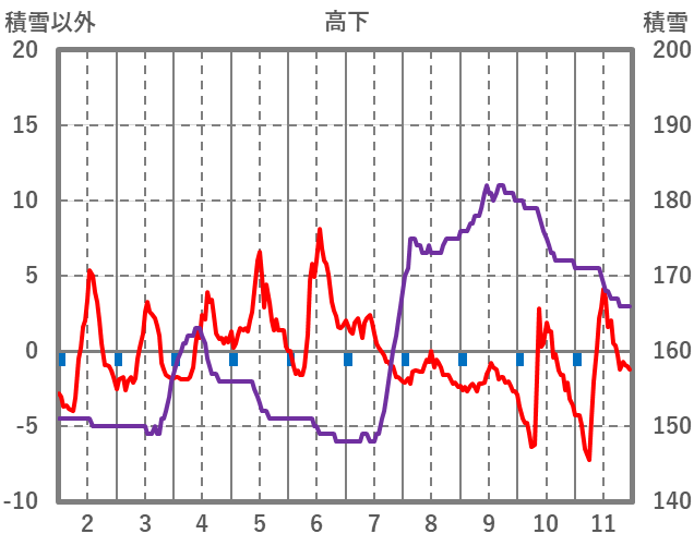 | 日 | 時 | 気温 | 降水 | 風向/風速 | 日照 | 積雪 | 降雪 |