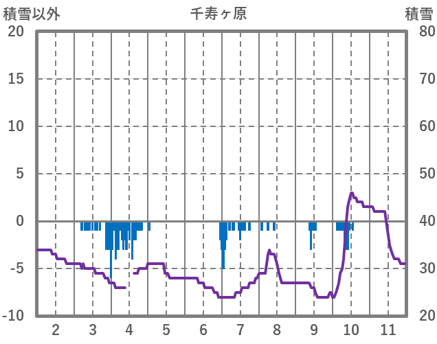 | 日 | 時 | 気温 | 降水 | 風向/風速 | 日照 | 積雪 | 降雪 |