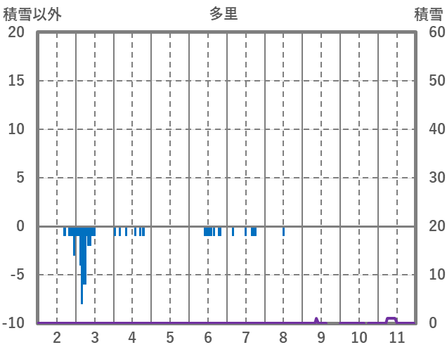 | 日 | 時 | 気温 | 降水 | 風向/風速 | 日照 | 積雪 | 降雪 |
