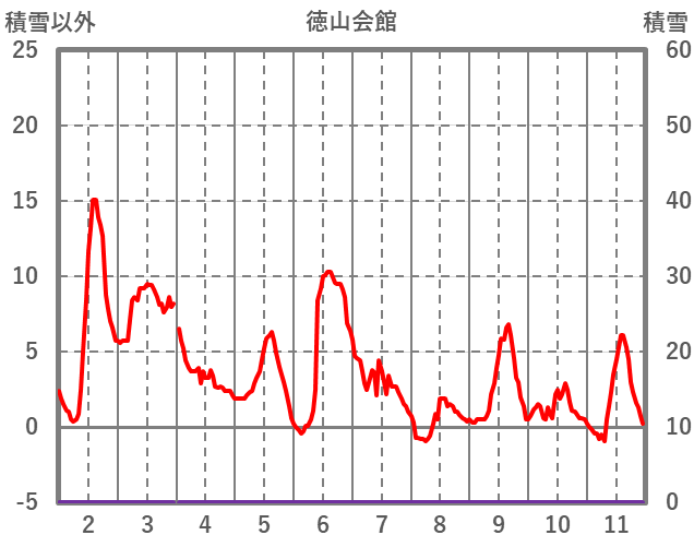 | 日 | 時 | 気温 | 降水 | 風向/風速 | 日照 | 積雪 | 降雪 |