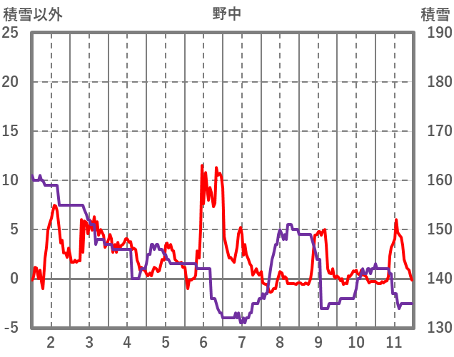 | 日 | 時 | 気温 | 降水 | 風向/風速 | 日照 | 積雪 | 降雪 |