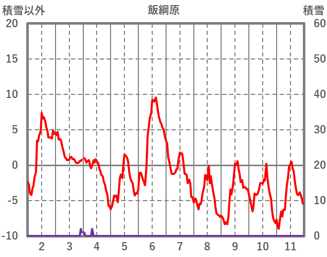 | 日 | 時 | 気温 | 降水 | 風向/風速 | 日照 | 積雪 | 降雪 |
