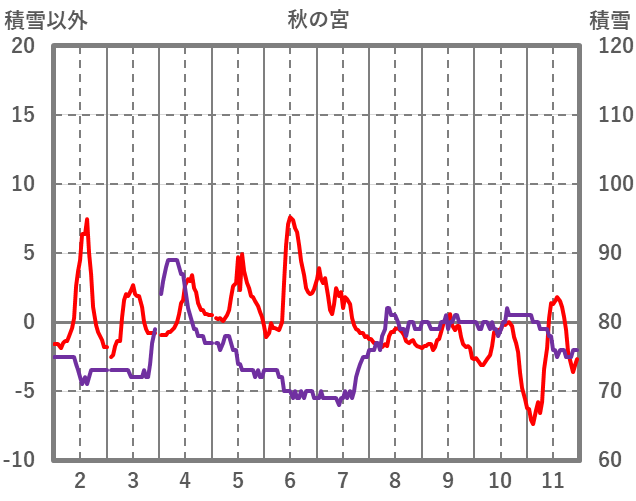 | 日 | 時 | 気温 | 降水 | 風向/風速 | 日照 | 積雪 | 降雪 |