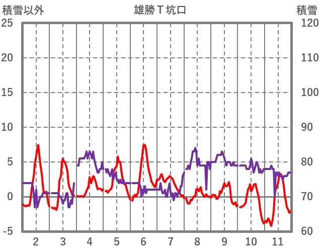 | 日 | 時 | 気温 | 降水 | 風向/風速 | 日照 | 積雪 | 降雪 |