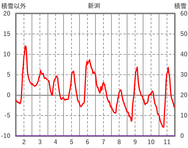 | 日 | 時 | 気温 | 降水 | 風向/風速 | 日照 | 積雪 | 降雪 |