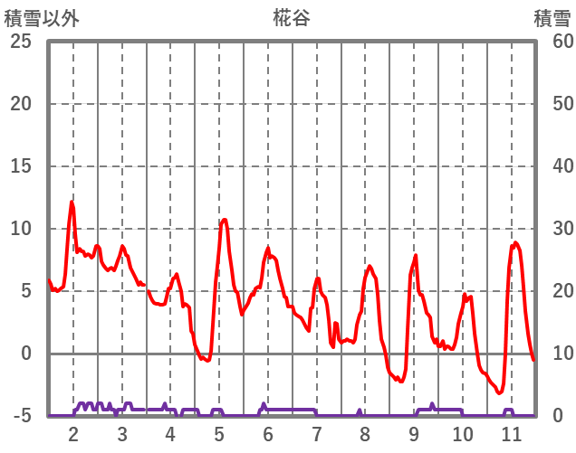 | 日 | 時 | 気温 | 降水 | 風向/風速 | 日照 | 積雪 | 降雪 |