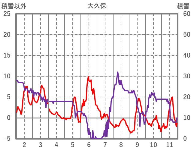 | 日 | 時 | 気温 | 降水 | 風向/風速 | 日照 | 積雪 | 降雪 |