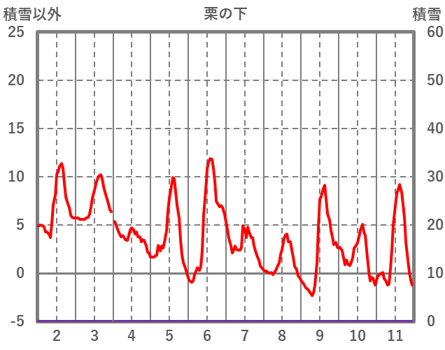 | 日 | 時 | 気温 | 降水 | 風向/風速 | 日照 | 積雪 | 降雪 |