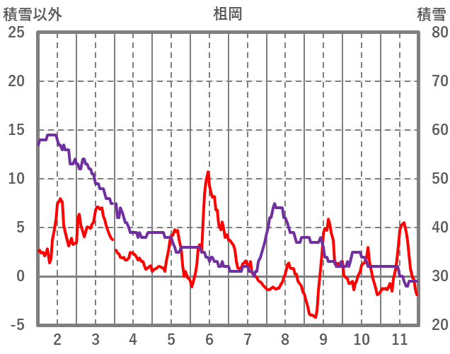 | 日 | 時 | 気温 | 降水 | 風向/風速 | 日照 | 積雪 | 降雪 |