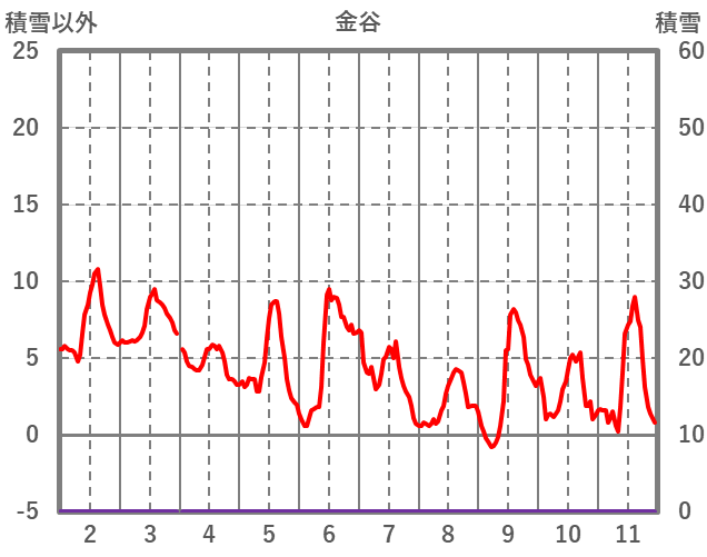 | 日 | 時 | 気温 | 降水 | 風向/風速 | 日照 | 積雪 | 降雪 |