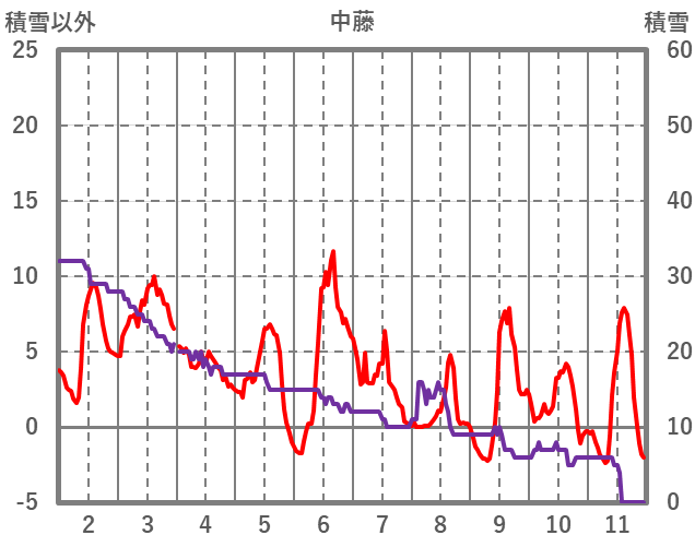| 日 | 時 | 気温 | 降水 | 風向/風速 | 日照 | 積雪 | 降雪 |