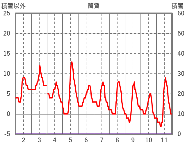 | 日 | 時 | 気温 | 降水 | 風向/風速 | 日照 | 積雪 | 降雪 |