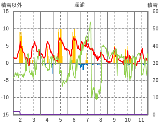 | 日 | 時 | 気温 | 降水 | 風向/風速 | 日照 | 積雪 | 降雪 |