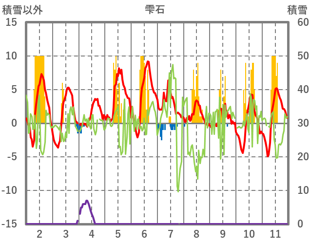 | 日 | 時 | 気温 | 降水 | 風向/風速 | 日照 | 積雪 | 降雪 |