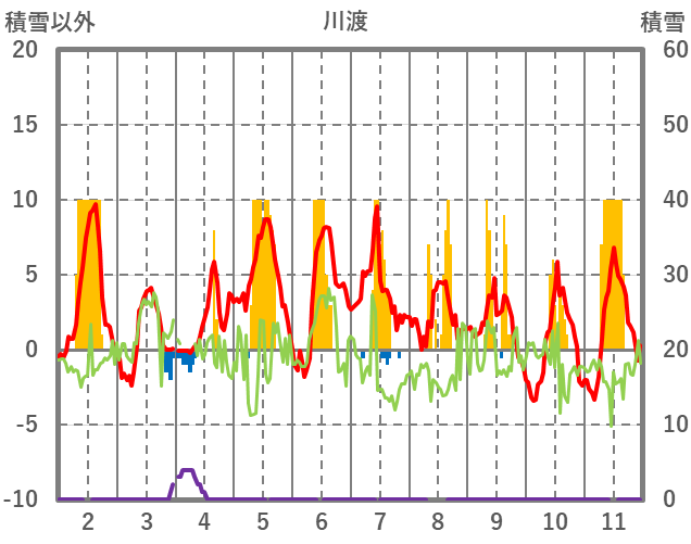 | 日 | 時 | 気温 | 降水 | 風向/風速 | 日照 | 積雪 | 降雪 |
