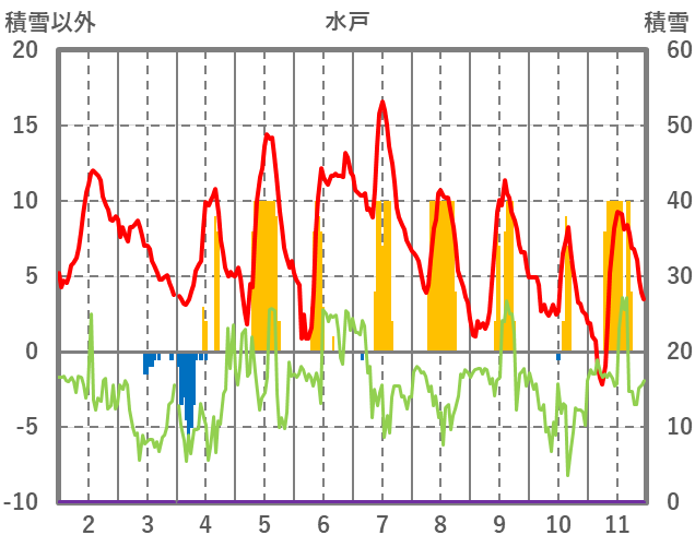 | 日 | 時 | 気温 | 降水 | 風向/風速 | 日照 | 積雪 | 降雪 |